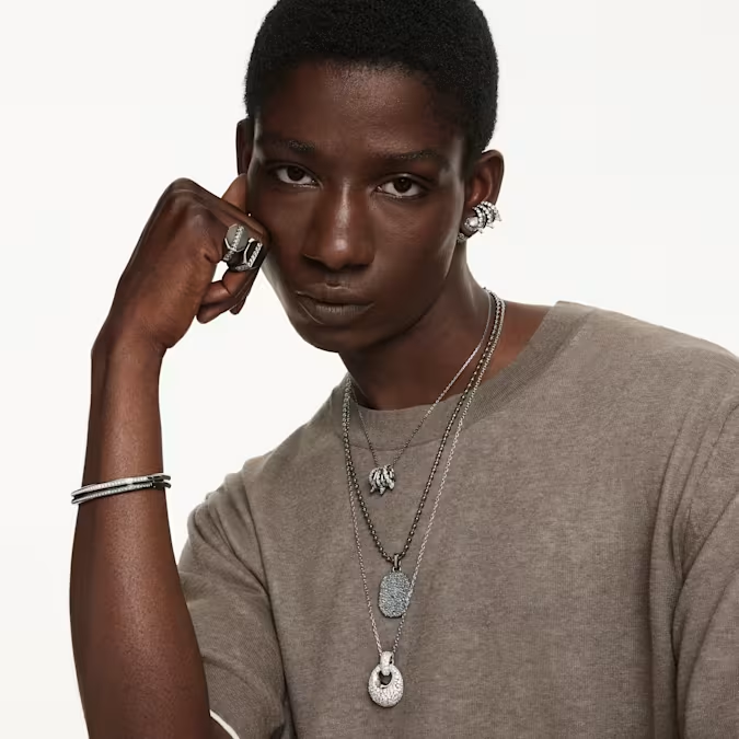 Dextera pendant Octagon shape, Round cut, Black, Ruthenium plated :: Royal House