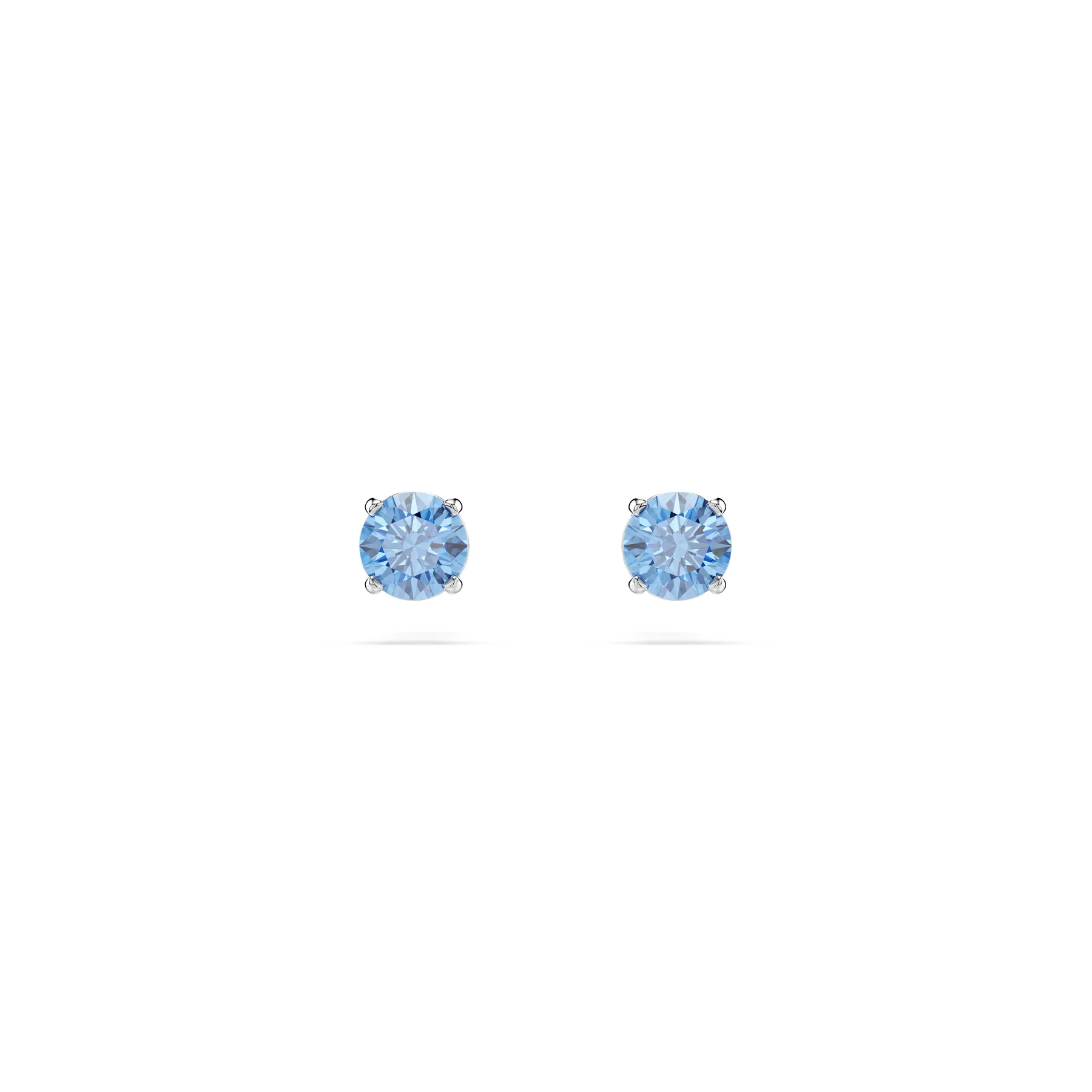 Silla stud earrings Round cut, Blue, Rhodium plated