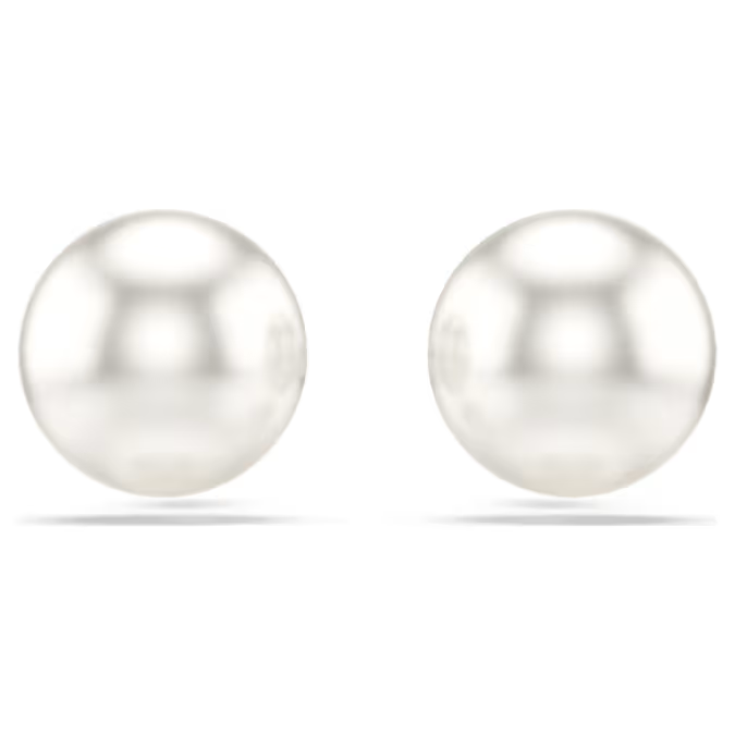 Matrix stud earrings Crystal pearl, White, Rhodium plated