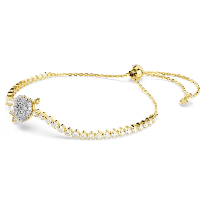 Вистинската љубов се гледа со блескава светлина во оваа Swarovski нараквица од семејството Idyllia. Нежниот синџир е украсен со Swarovski кристали на позлатена основа, додека во центарот блеска мотив во форма на срце прободен со стрелата на Купидон. Прилагодете ја големината со помош на лизгачкото закопчување и комбинирајте ја нараквицата со друг накит од истата романтично инспирирана колекција.
