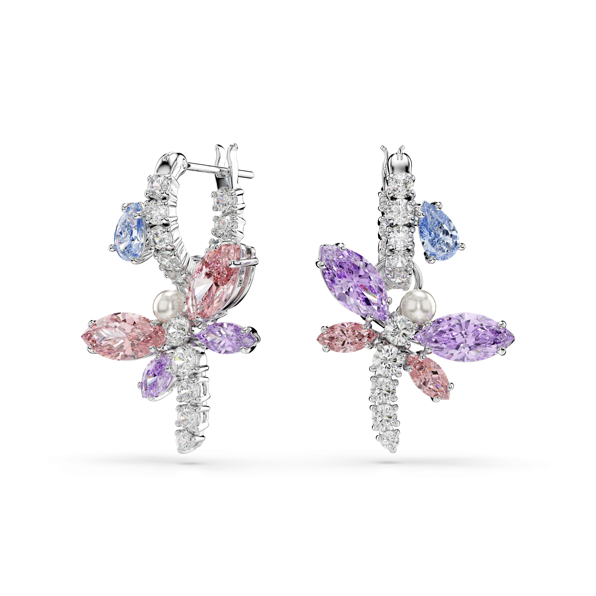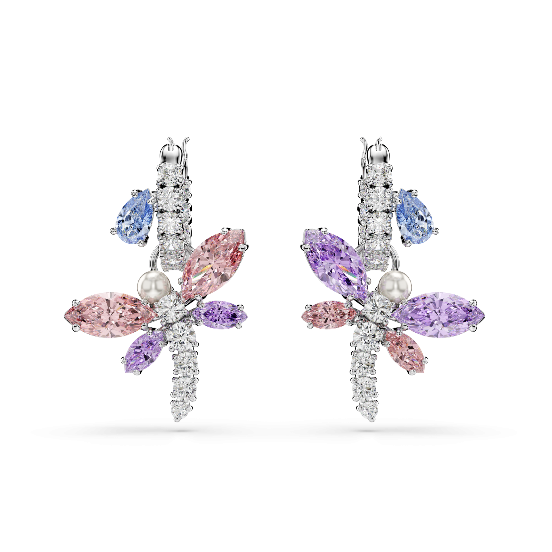 Направете своја стилска трансформација со овие впечатливи обетки со мотив на вилинско коњче. Поврзани со алки во pavé стил, секое вилинско коњче е прекриено со проѕирни Swarovski Zirconia кристали и содржи еден Swarovski Crystal Pearl бисер поставен на главата. За вистинска пастелна радост, крилјата на вилинското коњче откриваат розови и виолетови нијанси, кои наизменично се менуваат на секоја страна. Магичен и колоритен избор за вашите секојдневни комбинации.